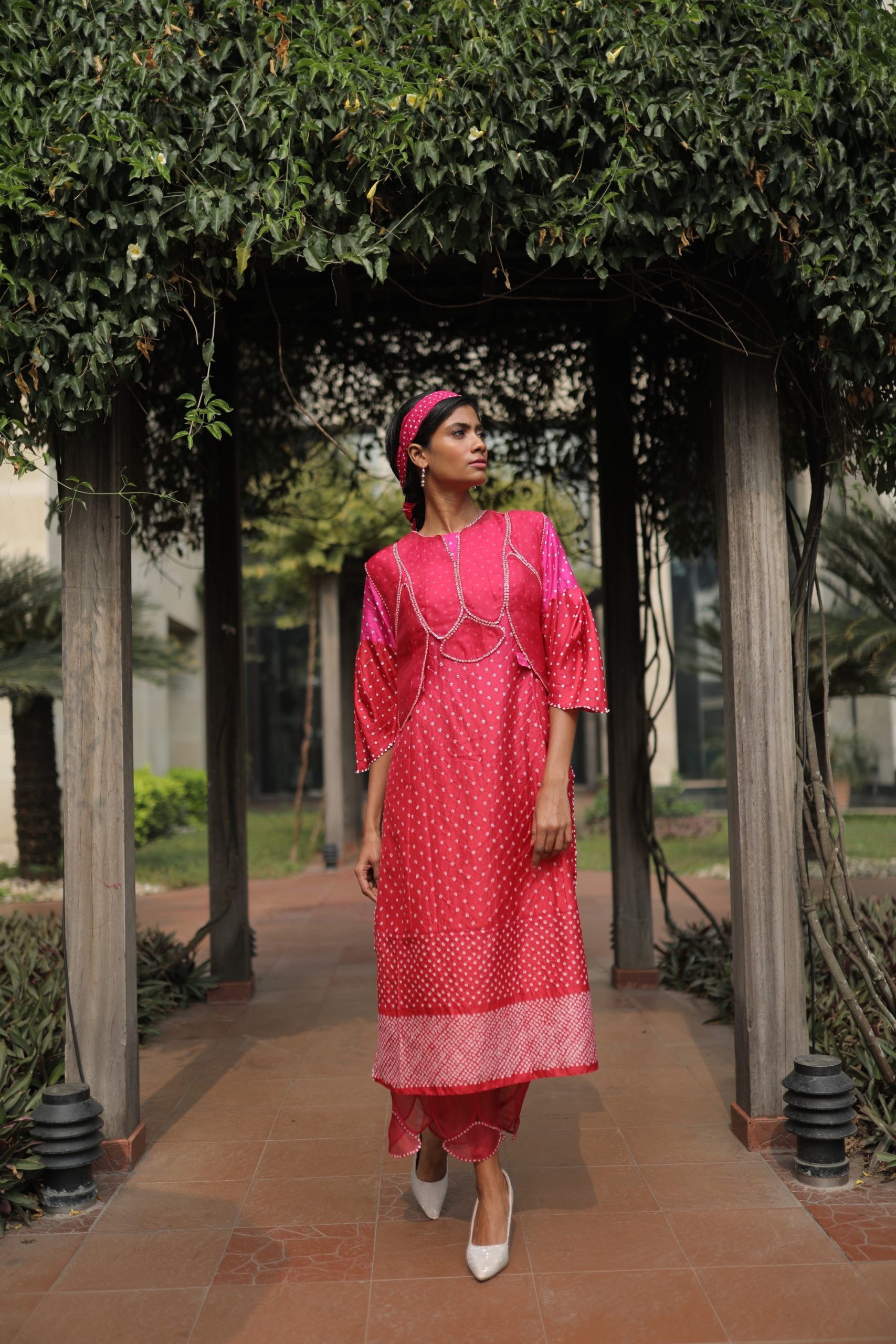 Pink Bandhej Kurta
